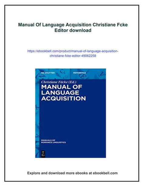 You know that reading Manual Of Language Acquisition Fcke Christiane is useful, because we can easily get a lot of information from the reading materials. Technologies have developed, and reading Manual Of Language Acquisition Fcke Christiane books can be far more convenient and easier. We are able to read books on the mobile, tablets and Kindle, etc. Hence, there are several books getting into PDF format.